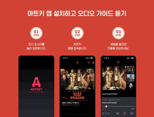 알렉스 프레거 전시의 오디오 해설은 아트키 앱을 통해 만나볼 수 있다.