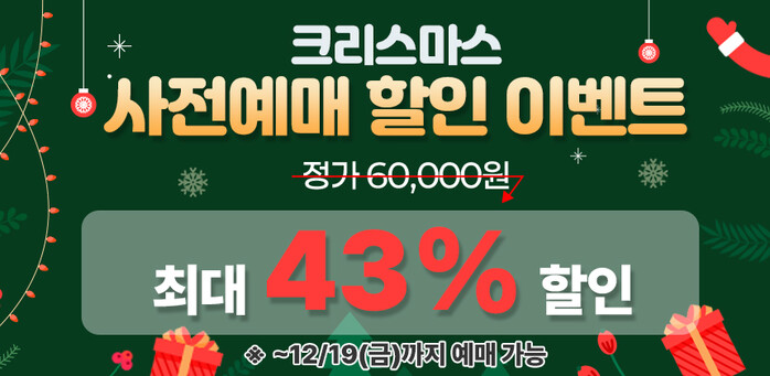 성수기 수요 증가에 맞춰 12월 19일까지 크리스마스 사전예매 할인 이벤트도 진행된다. 관객들은 더욱 합리적인 가격에 미리 좌석을 확보할 수 있으며, 사전 예매는 NOL티켓, 네이버예약, 스마트스토어, 타임티켓 등 주요 예매처에서 가능하다.
