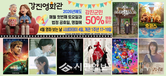 강진군은 4월에도 ‘영화 보는 날’ 행사를 이어갈 계획이다. 4월 행사는 첫 번째 토요일인 4월 4일과, 개관 1주년을 기념하는 4월 17일부터 19일까지 사흘 동안 진행할 예정이다.