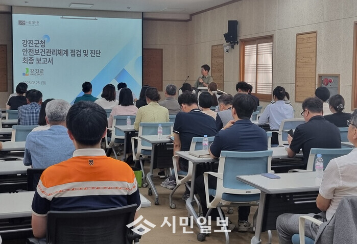 | ▲ 강진군, 25일 군청 대회의실에서 안전보건관리체계 점검 용역 결과보고회 진행 자료사진 / 강진군 제공 |