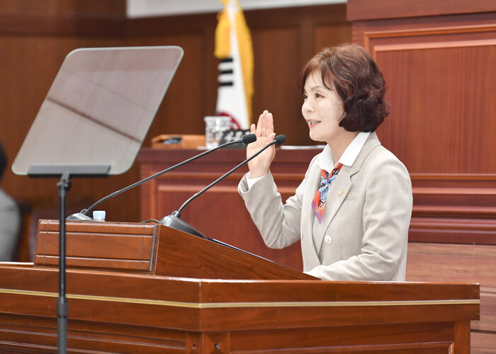 9일 제1차 본회의에서는 안건 상정에 앞서 지난 4월 10일 재선거에서 당선된 김응숙 의원이 의원 선서를 하였다.
