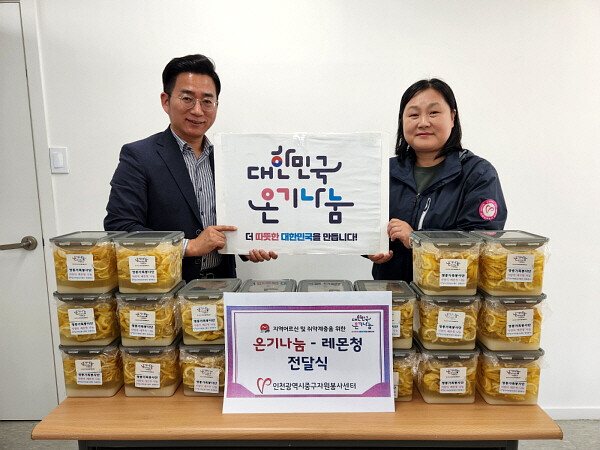 [인천=김형만 기자] 인천중구자원봉사센터(이하 중구센터)는 11월 5일 행정안전부가 추진하는 ‘온기 나눔 캠페인’의 나눔 분위기 조성에 앞장서고자 가족봉사단이 직접 만든 레몬청을 영종 관내 노인요양시설(구립해송요양원 등)에 전달했다.