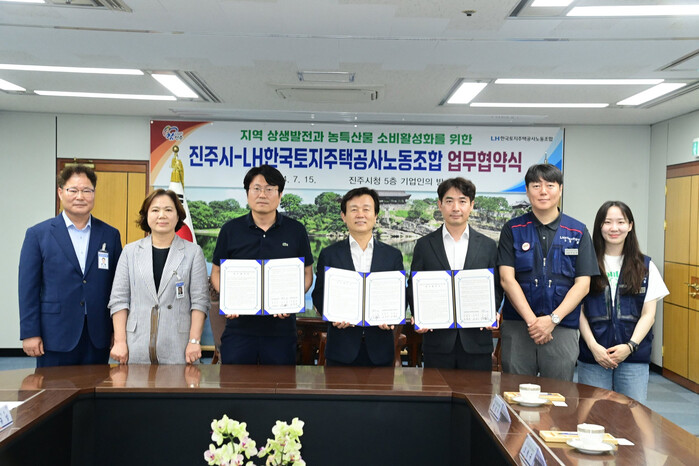 LH한국토지주택공사노동조합 공동 위원장은 “지역사회 상생발전과 농특산물 소비 활성화에 보탬이 될 수 있도록 진주시와 업무협약을 체결하게 되어 기쁘다”며 “앞으로 상호 긴밀히 협력하여 우수 농특산물 활성화와 지역경제 성장에 기여하겠다”고 말했다.