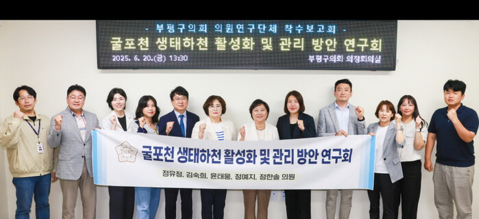 그러면서 ”이번 의원 연구단체 활동과 연구용역을 통해 굴포천 생태하천 복원 사업의 효과가 지속돼 주민의 재충전을 위한 친수공간으로 활용할 수 있는 정책 대안을 제시할 수 있도록 최선을 다하겠다”고 밝혔다.