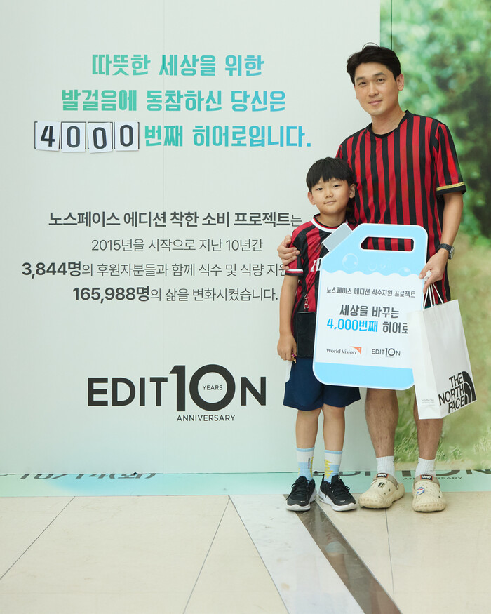 한편 월드비전과 노스페이스 에디션은 2015년부터 ‘쇼핑이 기부가 되는’ 착한 소비 프로젝트를 함께해 올해로 파트너십 10주년을 맞았다. 현재까지 4,000명의 후원자와 함께 잠비아, 콩고 등 165,988명의 아이들에게 깨끗한 물과 식량을 지원하며 선한 영향력을 확산시키고 있다.