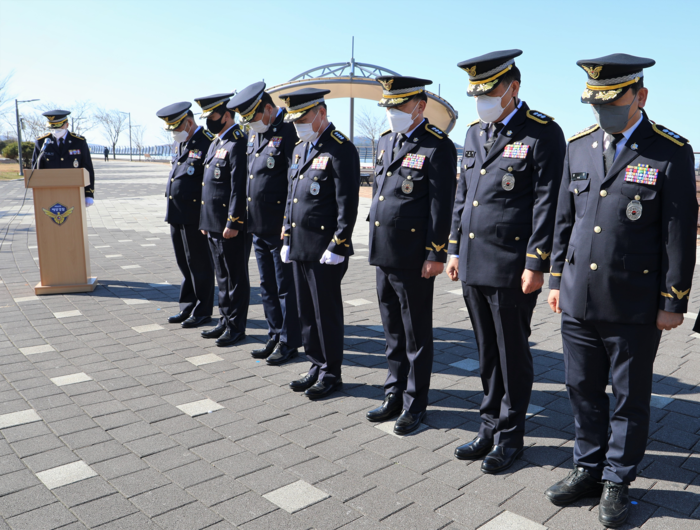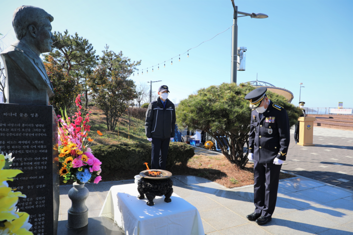 임재수 목포해양경찰서장이 새해 업무를 시작하며 3일 오후 목포시 노을공원 내 故 박경조 경위 흉상을 참배하고 그분의 숭고한 희생정신과 해양주권을 수호하는 사명감이 헛되지 않도록‘국민과 함께 더 나은 바다’를 만들어 나갈 것을 약속했다.