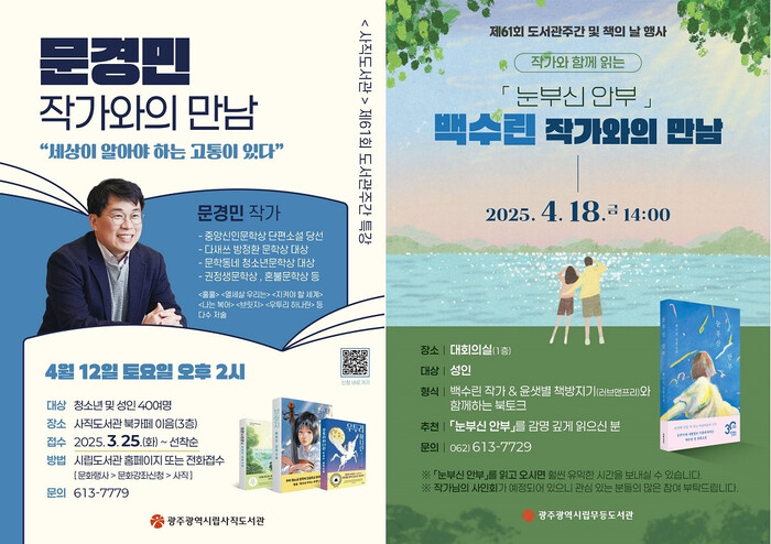 ‘도서관주간’ 사직‧무등도서관서 문경민‧백수린 작가 초청