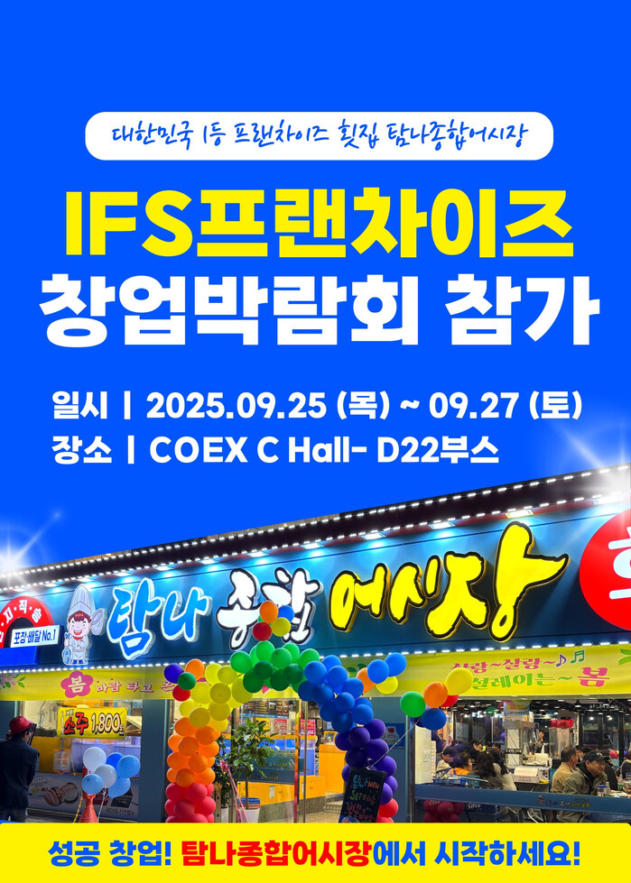 무엇보다 홀·포장·배달을 아우르는 3WAY 매출 구조를 통해 안정성과 성장성을 동시에 확보할 수 있는 탐나종합어시장만의 경쟁력을 이 자리에서 확인할 수 있을 예정으로, 가맹상담 부스도 운영해 예비창업자들이 실제 매출 사례와 본사 지원 정책을 확인할 수 있도록 안내할 계획이다 가맹상담을 통해 창업조건, 상권분석 등 실질적인 창업 정보를 직접 확인할 수 있다.