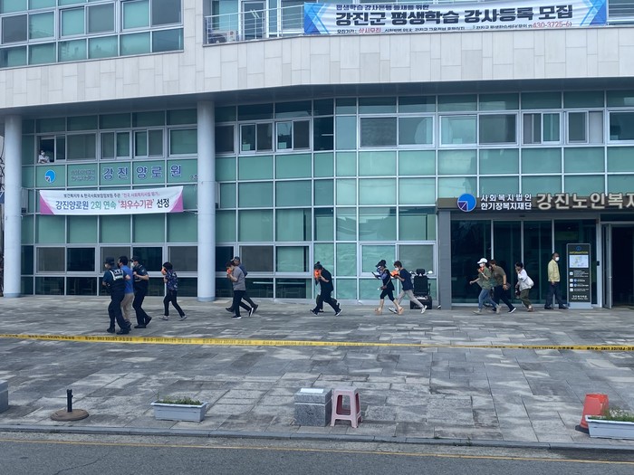 [강진=정찬남 기자] 전남 강진군은 전시 대비태세 확립을 위한 국가비상사태 발생 대비 2022 을지연습 실제훈련으로 지난 24일 다중이용시설인 강진노인복지센터에서 강진군과 인근 군부대, 경찰서, 소방서, 의용소방대원 등 80여 명이 참여한 가운데 실제 훈련을 진행했다.