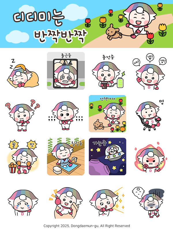 새로운 디디미 이모티콘은 출근 ‧ 휴식 ‧ 갈망 ‧ 분노 등 다양한 감정과 일상의 모습을 표현할 수 있는 16종으로 구성되며, 6월 19일(목) 오후 2시부터 동대문구 카카오톡 채널 친구 추가자 2만 5000명에게 제공된다.