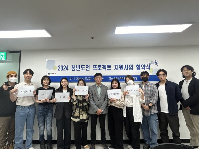 [시민일보 = 여영준 기자] 서울 강북구(구청장 이순희)는 최근 ‘2024년 청년도전 프로젝트’에 선정된 8개 사업을 강북구 지방 보조금 심의 위원회를 열어 최종 선정했다고 밝혔다.