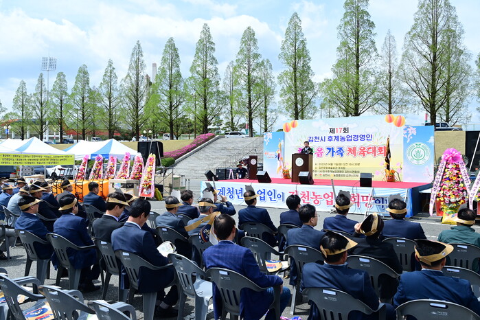 [김천=박병상 기자] (사)한국후계농업경영인 김천시연합회(회장 최진호)는 지난 11일 김천종합스포츠타운 주차장에서 300여명 회원 가족과 내·외빈이 참석한 가운데 제17회 한마음 가족체육대회를 개최했다.