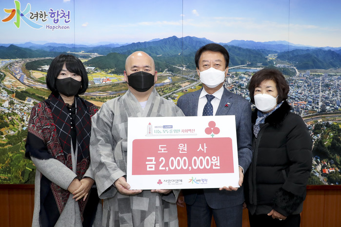 도원사(주지 원각스님)는 10일 합천군을 방문해 이웃돕기 성금 200만원을 기탁했다.