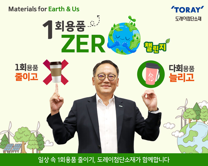 [구미=박병상 기자] 도레이첨단소재 전해상 사장이 친환경 경영 실천을 위해 ‘1회용품 제로(ZERO) 챌린지’에 동참했다고 7일 밝혔다.