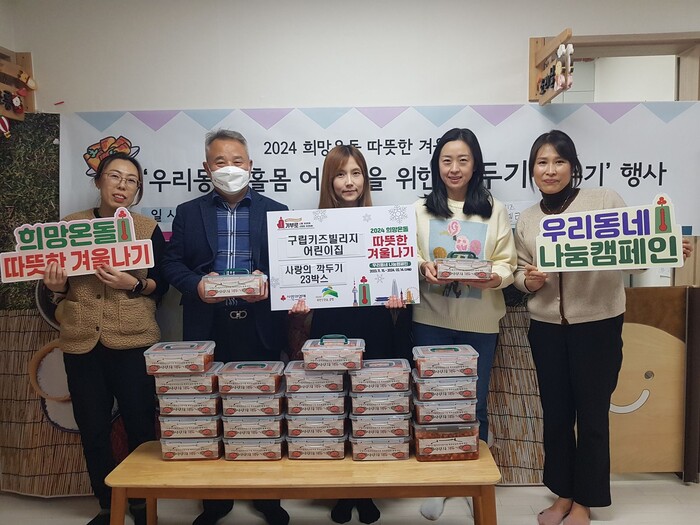 김현아 구립 키즈빌리지어린이집 원장은 “우리 아이들, 학부모와 함께 깍두기를 만들며 나눔의 의미를 되새기는 소중한 시간을 보냈다”며 “모두가 소외됨이 없이 따뜻한 겨울을 나도록 함께 힘을 모으겠다”고 밝혔다.
