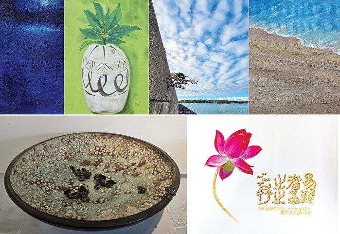 | ▲ 상단 왼 쪽부터 고석찬 작가의 '달빛' , 김상례 작가의 ‘도자기에 핀 고무나무’, , 배성우 작가의 ‘중도’, 이소영 작가의 ‘깊이’. 아래 왼 쪽부터 박미경 작가의 ‘숨 쉬는 연안’, 이민정 작가의 ‘팔만대장경으로부터’ / 강진군 제공 |