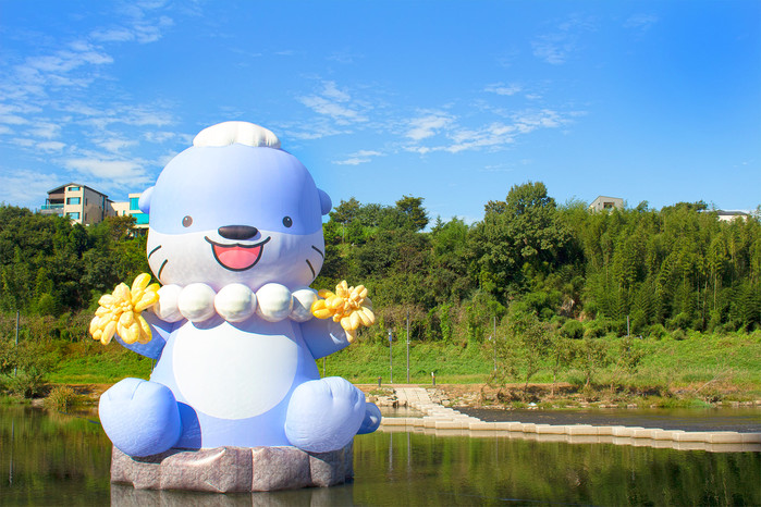 하모는 공공미술 전시품 재질의 특성상 대형 풍선 형태로 제작돼 바람을 불어넣어 형태를 유지한다.