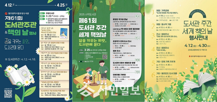 [광주=정찬남 기자] 광주광역시립도서관은 ‘제3회 도서관의 날’(4월12일)과 ‘제61회 도서관주간’(4월12~18). ‘세계 책의 날’(4월23일)을 맞아 ‘꿈을 키우는 씨앗, 도서관에 묻다’를 주제로 다양한 독서문화 행사를 연다.