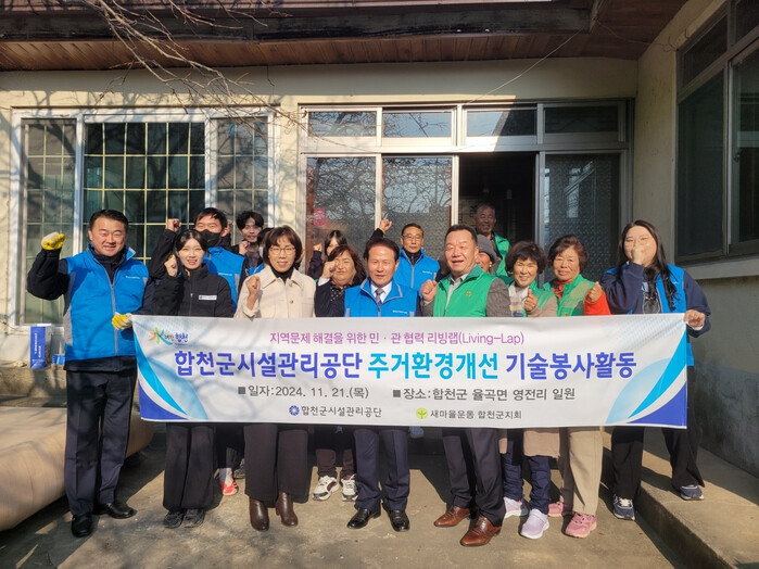 ‘지역문제 해결을 위한 민·관협력 리빙랩(Living-Lab)’ 프로젝트는 2023년부터 이어지고 있는 합천군시설관리공단의 대표적인 사회공헌사업으로서, 사회공헌증진 협약을 체결한 새마을운동합천군지회(회장 정성철)와 관할 면사무소 등 이해관계자와의 소통을 바탕으로 주민 생활밀착형 문제 발굴·해결을 통해 지역 정주환경 개선을 이루고자 하는 다자간 공유·협업 프로젝트다.