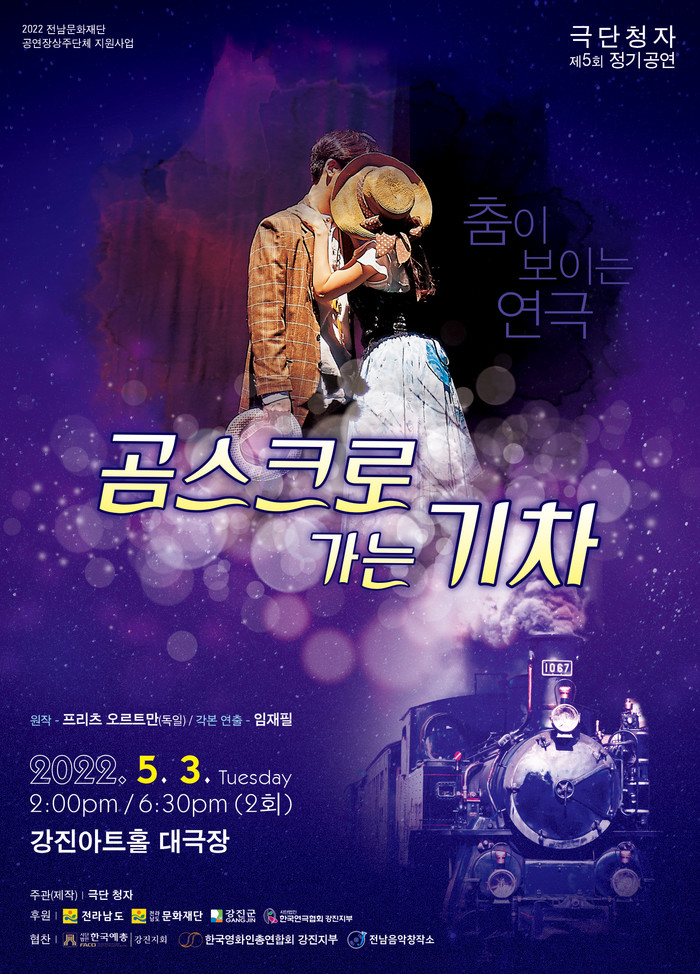 이번 공연 제목은 ‘춤이 보이는 연극, 곰스크로 가는 기차(독일 원작 프리츠 오르트만)’로, 미지의 이상향 곰스크로 길을 떠나는 젊은 부부의 이야기를 그린 작품이다. 4년 전 강진아트홀에서 초연으로 선보이며 연극계에 돌풍을 일으켰던 작품이다.