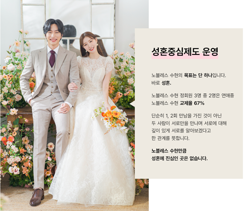 노블레스 수현은 소비자 중심, 고객 중심, 성혼 중심 결혼정보업체인 만큼 회원의 매칭 기간이 3주가 넘어가지 않도록 철저히 관리해왔다. 그 결과 성혼율과 고객만족도 모두 지속적인 상승세를 탔다.