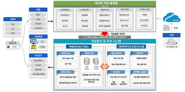또한, 기초학력 진단.보정 모듈과 학습유형 진단도구를 탑재하여 기초학력 지도를 지원하고, 학습 데이터 수집.분석 결과를 교사.학생.학부모에게 맞춤형으로 제공하여 교수학습을 효과적으로 지원할 것으로 기대된다.