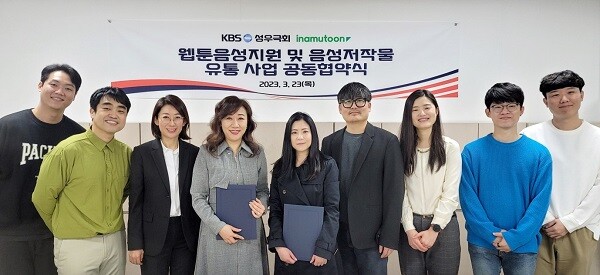 KBS 한국방송 본사에서 진행된 이날 협약식에는 KBS 성우극회 박형욱 회장 및 임원진과 아이나무툰 박보미 대표,서범강 이사가 참석해 양측은 음성 및 웹툰을 활용한 디지털 콘텐츠 제작 및 활용상의 협업을 하기로 했다.