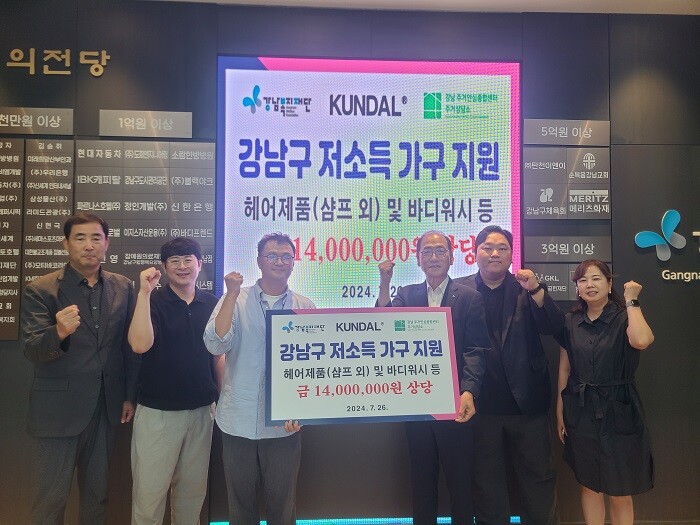 이번 기부는 강남복지재단을 통해 더스킨팩토리 본사가 있는 강남구 지역의 취약가정을 지원하고자 진행되었다. 후원 물품은 강남구 지역의 취약 가정이 일상의 모든 순간이 건강하고 기분 좋은 경험이 될 수 있도록 쿤달 샴푸, 트리트먼트, 바디워시, 바디로션 등 약 3,000개 수량의 생활용품으로 구성되었다.