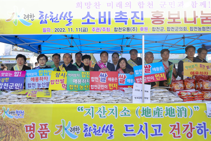 이날 주요 행사내용으로는 합천쌀 홍보를 위해 합천유통(주)에서 2022년 햅쌀 1kg용량 500포를 무료 나눔하고, 한국여성농업인합천군연합회(회장 이동선)에서 합천쌀로 만든 가래떡 시식회도 함께 진행하여 쌀 가공품에 대한 친숙도를 높이고 쌀 소비 촉진에 기여했다.