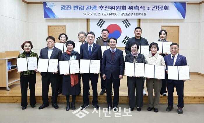 군은 지난 21일 군청 대회의실에서 발족식 및 첫 간담회를 열고, 공동위원장 2명(이병철 부군수, 정항채 이통장연합회 강진군지회장)과 부위원장 1명(이을미 강진군 문화관광해설사)을 포함한 20명의 위원을 위촉했다. 이어 위원장을 비롯한 임원진을 확정하고, 2024~2025년 반값여행 운영 성과와 개선 과제, 2026년 추진 방향 등 주요 안건을 논의했다.