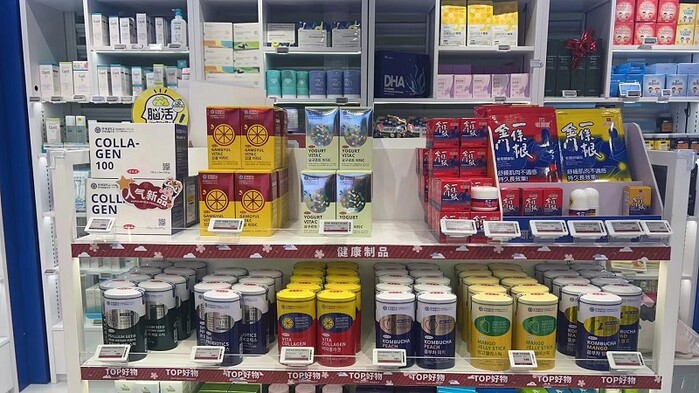 한편, 연세대학교 연세생활건강 제품은 타오바오, 알리바바, 징동몰 등 중국 내 온라인 쇼핑몰에도 입점되어 온라인에서도 제품들이 판매되고 있고. 오프라인에서는 약 1만8천 여 곳의 매장에서 일반식품 진열판매도 진행 중이다. 틱톡 등을 통해 왕홍들과 마케팅도 활발히 추진하고 있는 중이다.