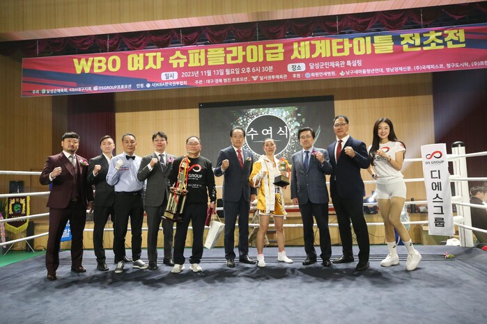 대구 달성군민체육관 특설링에서 달성군체육회, KBA대구지회,(주)디에스그룹이 주최하고 달서복싱체육관이 주관하여 진행된 박지현과 왕 얀(중국)의 WBO 여자 슈퍼플라이급 세계타이틀 전초전 대회가 성화이에 마무리됐다.