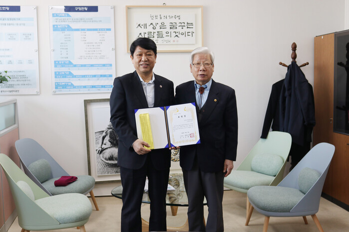 [시민일보 = 여영준 기자] 관악구시설관리공단 천범룡 이사장이 지난 18일 대한노인회로부터 노인복지 관련 사회공헌활동에 기여한 공을 인정 받아 표창을 수상했다.