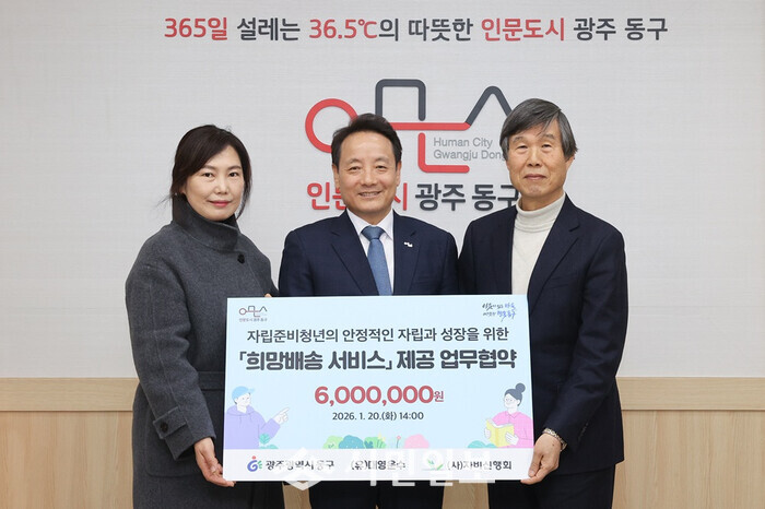 이날 협약에 따라 (유)대영운수는 사업비 6백만 원을 후원하며 든든한 후원자 역할을 맡고, (사)자비신행회는 연계 기관으로서 물품 제공 및 전달 등 사업 수행을 지원한다. 동구는 사례관리를 통해 대상 청년의 욕구를 세밀하게 파악하고 적절한 지원 대상자 선정, 사업 운영·조정 등 행정적 지원을 담당할 예정이다.