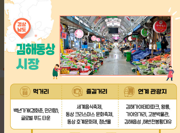 김해시는 한국관광공사와 함께 전통시장 활성화를 위한 ‘전통시장 가는 달·여행가는 달’ 동행 캠페인을 실시한다고 8일 밝혔다.