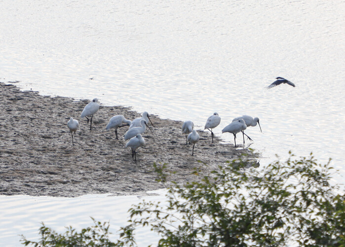 ▲ 저어새(Platalea leucorodia) 10여마리가 먹이활동을 하고 있는 모습 /사진제공=안산환경재단 |