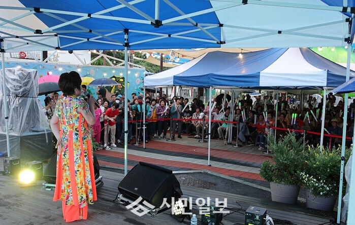 | ▲ 강진병영 불금불파 축제장을 찾은 방문객들이 특별 초청가수 김연자 공연을 즐기고 있다. / 강진군 제공 |