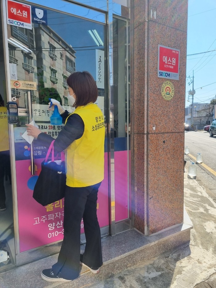 양산시는 소상공인 점포를 매개로 한 코로나19 확산 방지를 위해 공공근로 사업과 연계하여 현장방역을 실시한다.