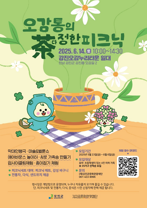 강진군문화관광재단 백경자 대표이사는 “이번 행사는 단순한 관광을 넘어, 강진의 전통문화와 자연을 체험하고 오감누리타운을 가족 중심 관광거점으로 조성하는 계기가 될 것”이라며 “강진에서 가족과 함께 특별한 추억을 만들고, 차문화와 고려 역사 속 깊은 이야기를 경험해보길 바란다”고 말했다.