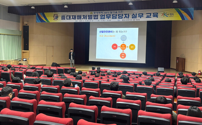 이번 교육은 순환 근무를 하는 공무원 조직의 특성을 고려하여 담당자 변경 등으로 인한 업무 공백을 예방하고 중대재해 예방을 위한 실질적인 대응 방안을 마련하기 위해 진행됐다.