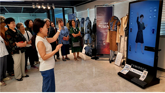 이번 교육은 단순한 견학이 아닌 실무 체험 중심으로 구성되었으며, 최신 디지털 기술과 산업 트렌드를 직접 접할 수 있는 프로그램으로 운영되었다. 참가자들은 패션디자인학과에서 진행된 실습 교육을 통해 가상 피팅 기술 기반의 디지털 착장 시연하였으며(패션디자인과 김태미 교수), 봉제 기술과 디자인 트렌드에 대한 소개와 설명을 들었다. 이를 통해 최신 장비와 기술에 대한 이해를 높이고 실무 역량을 강화하는 기회를 가졌다.