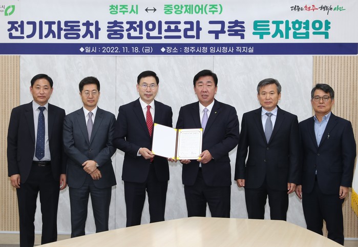 이날 협약식에는 이범석 청주시장과 중앙제어㈜ 오영식 대표 등 관계자 6명이 참석했다.