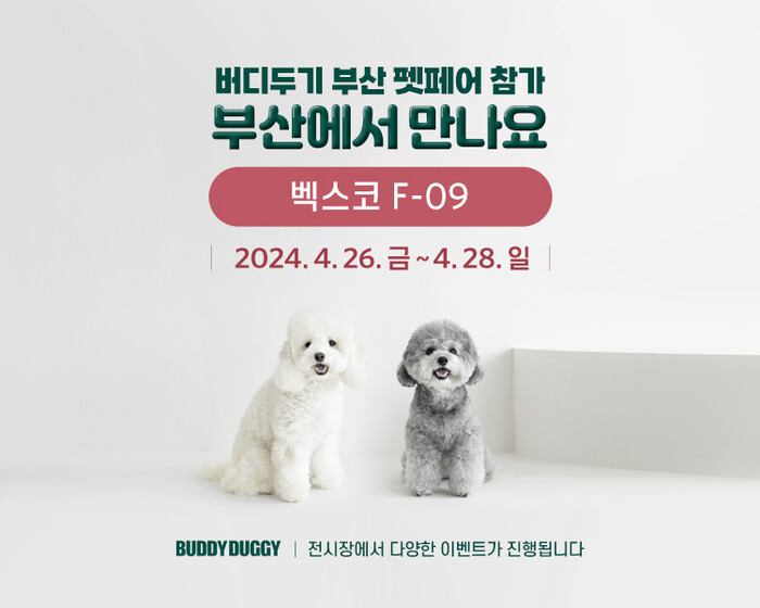 버디두기는 오는 4월 26일부터 진행되는 2024 케이펫페어 부산에 참여한다. 부산 벡스코 전시홀 F-09에서 3일간 만나볼 수 있다.