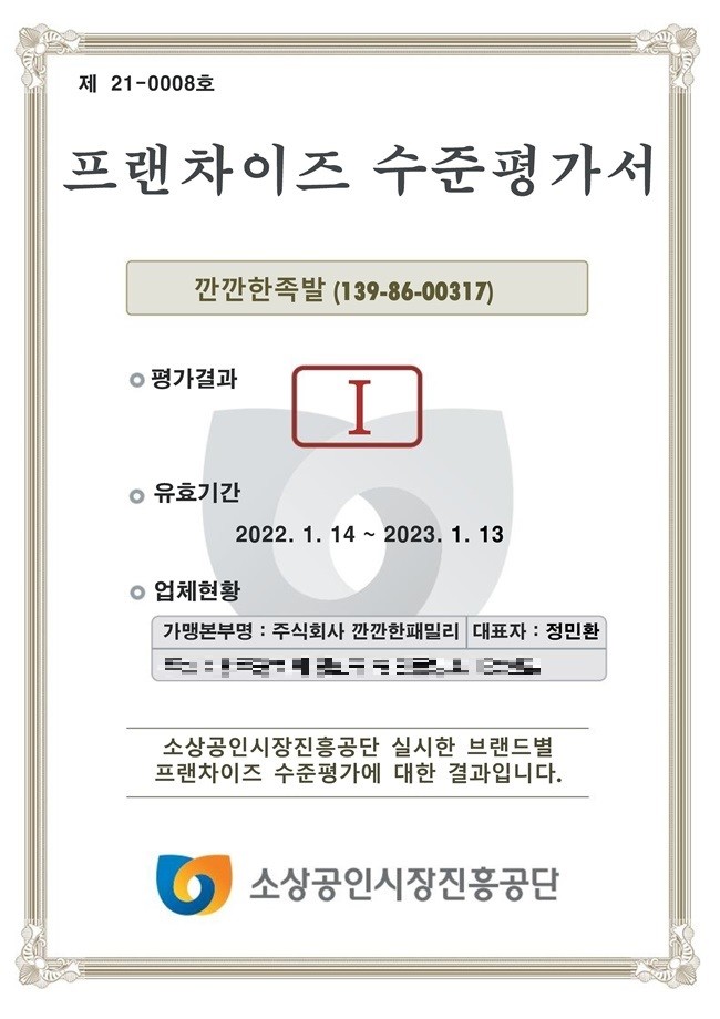 깐깐한족발은 이번 ‘2021 프랜차이즈 수준평가’의 모든 항목에서 높은 점수를 획득하며 지난 2017년부터 5년 연속으로 우수 등급 인증을 받게 됐으며, 2019년 부터는 3년 연속 1등급 인증을 받고 명예의 전당에 올랐다.