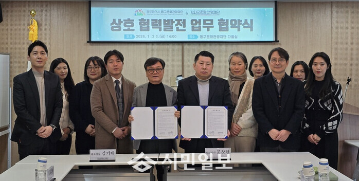 두 기관은 지난 23일 광주 동구문화관광재단 다올실에서 ‘광역 연계 관광콘텐츠 육성을 위한 업무협약’을 체결했다.