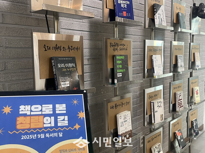 | ▲ 광주중앙도서관이 9월 한 달 간 진행한 독서의 달 행사에서 전시 프로그램 책으로 본 청렴의 길을 통해 청렴 도서 소개 / 자료사진 = 광주광역시 제공 |