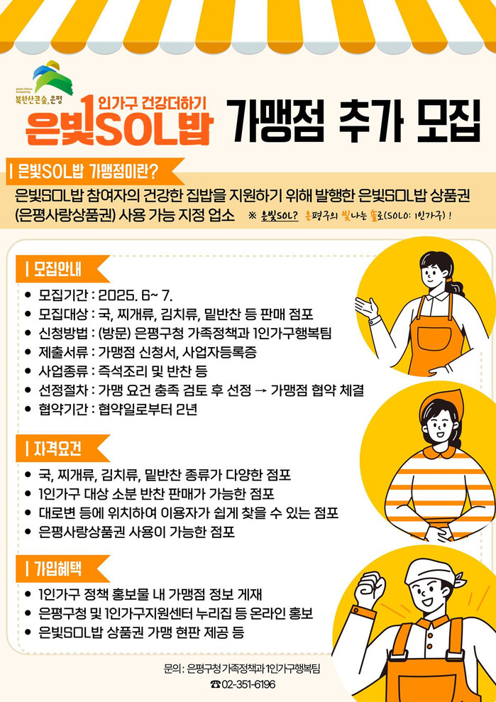 | ▲ 은평구, 1인가구 건강 집밥 지원사업 가맹점 모집 안내 포스터 |
