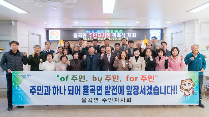 이날 행사에서는 25명의 위원이 공식 위촉됐으며, 김윤철 합천군수, 정경희 율곡면장, 박안나 군의회 부의장, 김문숙 의회운영위원장이 참석해 주민자치회의 출범을 축하했다.
