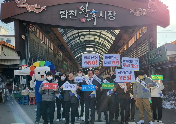 [합천=이영수 기자] 합천군선거관리위원회는 오는 3월8일 실시하는 '제3회 전국동시조합장선거'를 앞두고 지난 23일 합천읍 전통시장에서 공명선거 분위기 조성을 위한 캠페인을 벌였다.