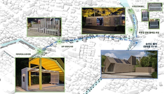 올해는 ‘푸른길 문화샘터’를 기점으로 청미장, 콩집, 꿈집, 광주사람들, 서원문 제등, 소통의 오두막, 잠망경과 정자 등 기존폴리 7점과 이코한옥, 옻칠 집 등 신규폴리 2점을 연결하는 둘레길 2차구간 조성을 6월 완료할 예정이다.